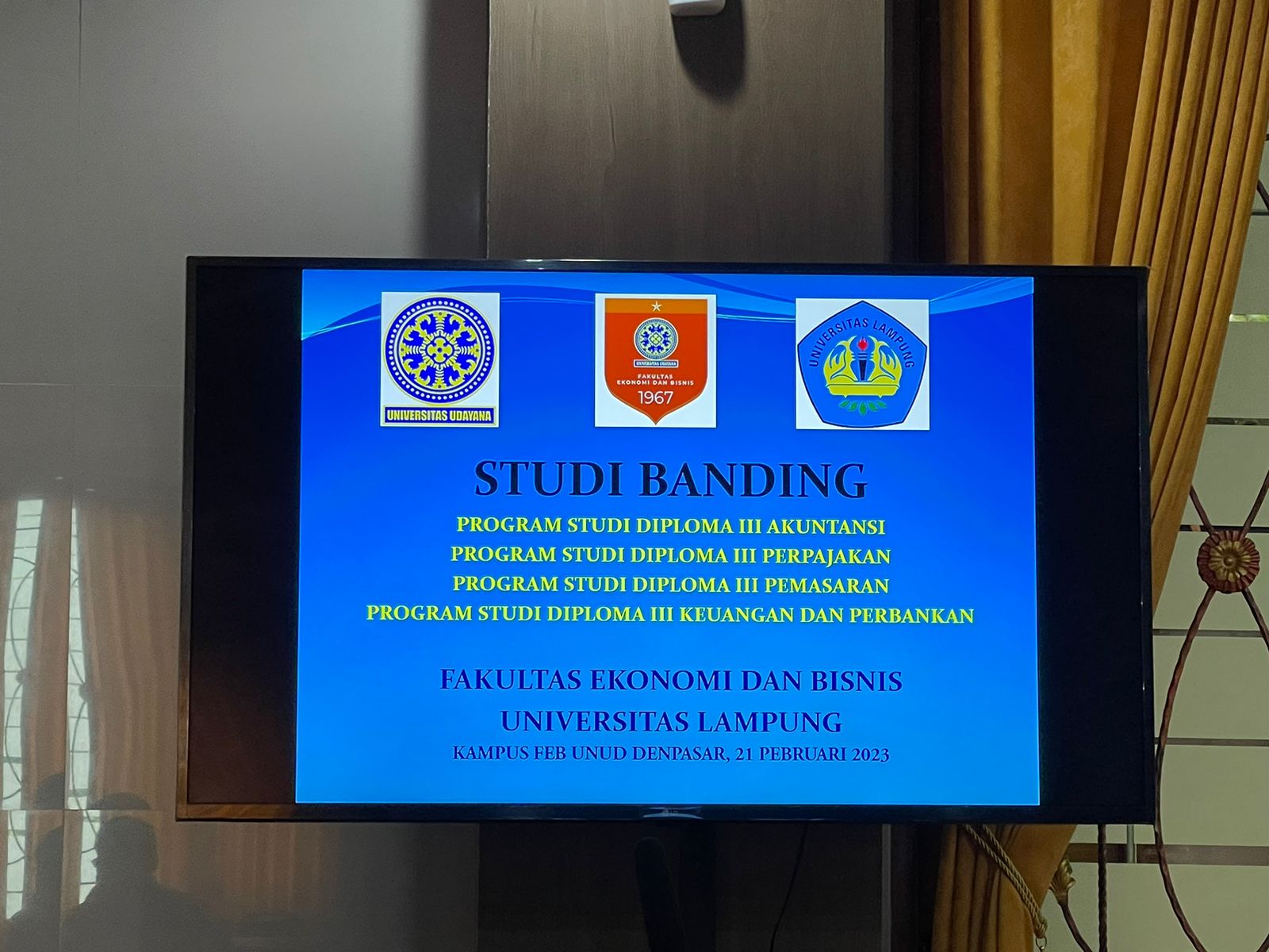 Mengacu pada surat tugas Surat Tugas Dekan Fakultas Ekonomi dan Binis Universitas Lampung Nomor:1253/UN26.11/KP.01.00/2023 tanggal, 10 Februari 2023 untuk melakukan studi banding ke Fakultas Ekonomi dan Bisnis Universitas Udayana dan Fakultas Vokasi Universitas Dhayana Putra Denpasar Bali. Dua universitas tersebut dituju oleh FEB Unila dalam penjajakan serta perjanjian formal demi terlaksananya program MBKM tahun ini, adapun universitas yang dimaksud yaitu Universitas Udayana yang dilaksanakan kunjungan kerja sama pada tanggal 21 Februari 2023 dan Universitas Dhiaya Pura pada tanggal 22 Februari 2023.